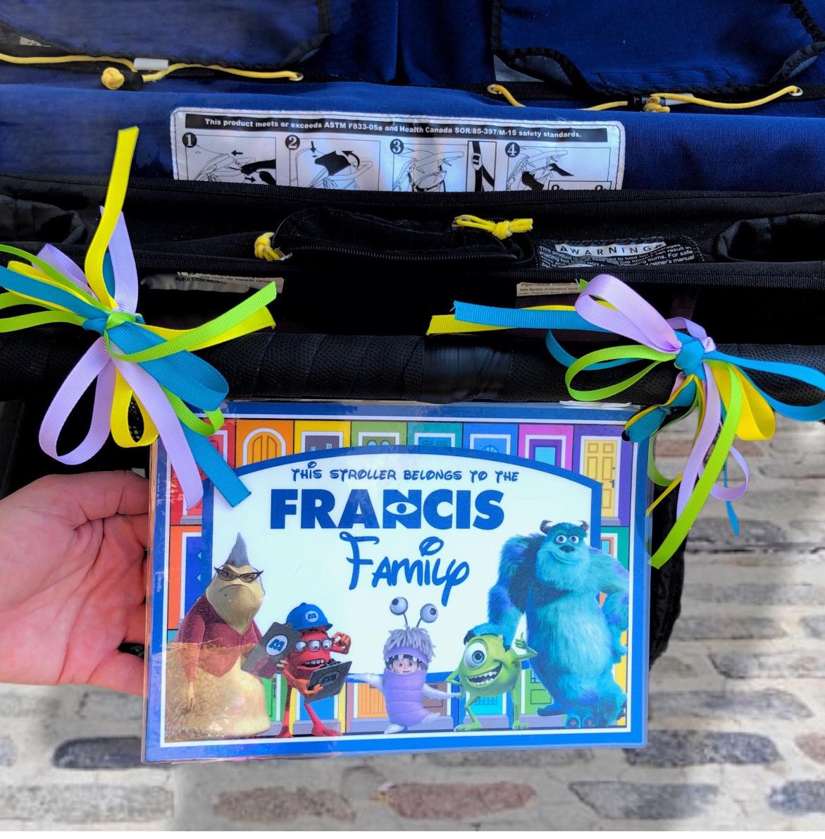 Headed to Disney? This stroller sign is perfect for your upcoming trip! Great for decorating your stroller & so helpful for identifying and locating your stroller after parking it for rides, shows & parades. You can easily spot your stroller amongst the sea of hundreds of other strollers! (This is especially helpful since cast members are always moving strollers around!) Save yourself some time and stress by easily identifying what is yours!