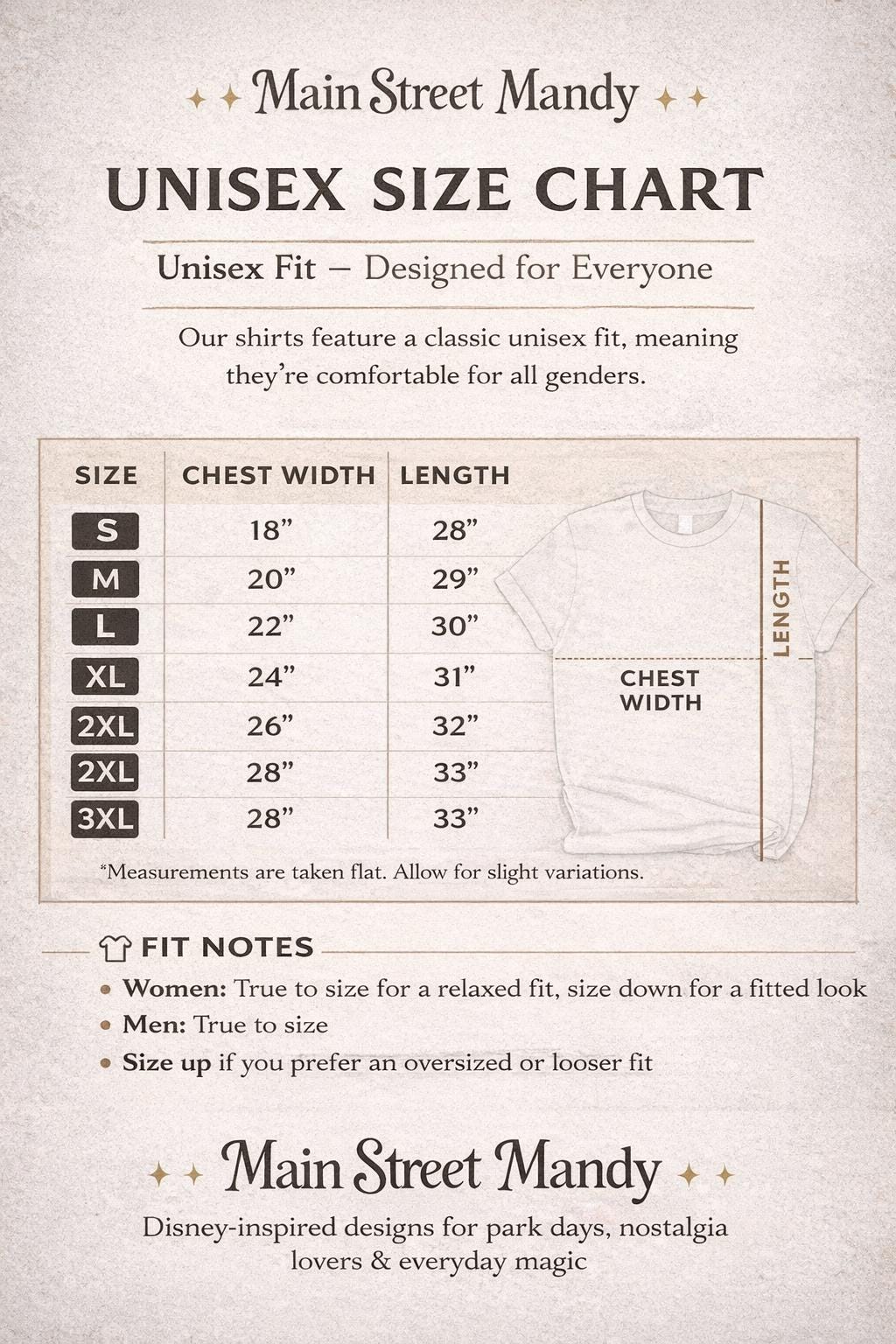 Printed on soft, comfortable unisex t-shirt, this tee is made for all day wear - from rope drop to fireworks.