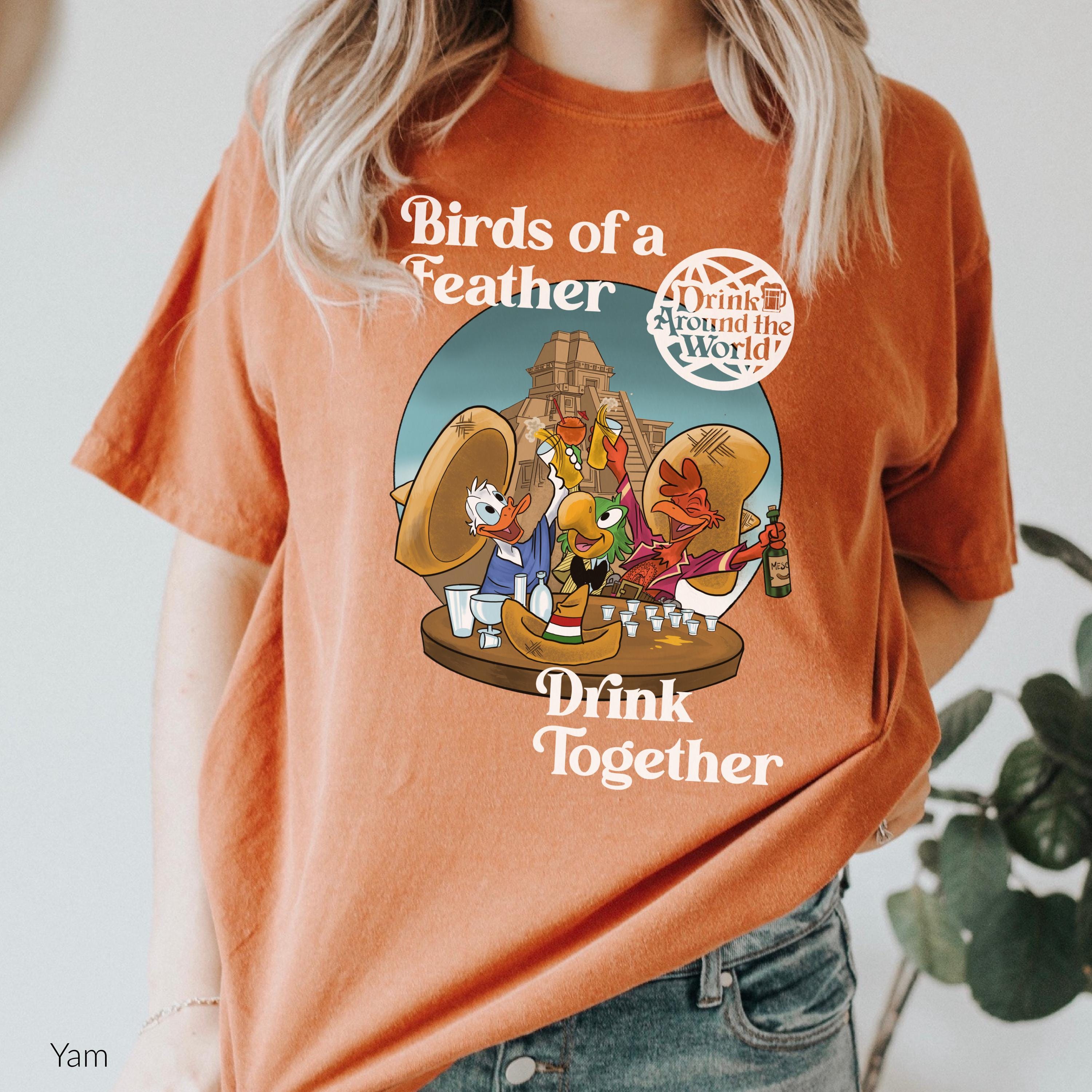 Fun and playful Disney Inspired Tee - "Birds of a Feather Drink together" featuring The Three Caballeros!